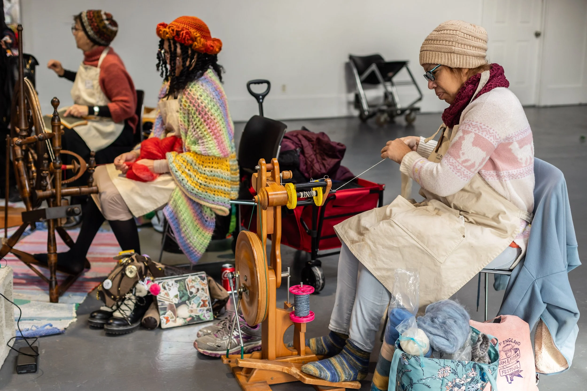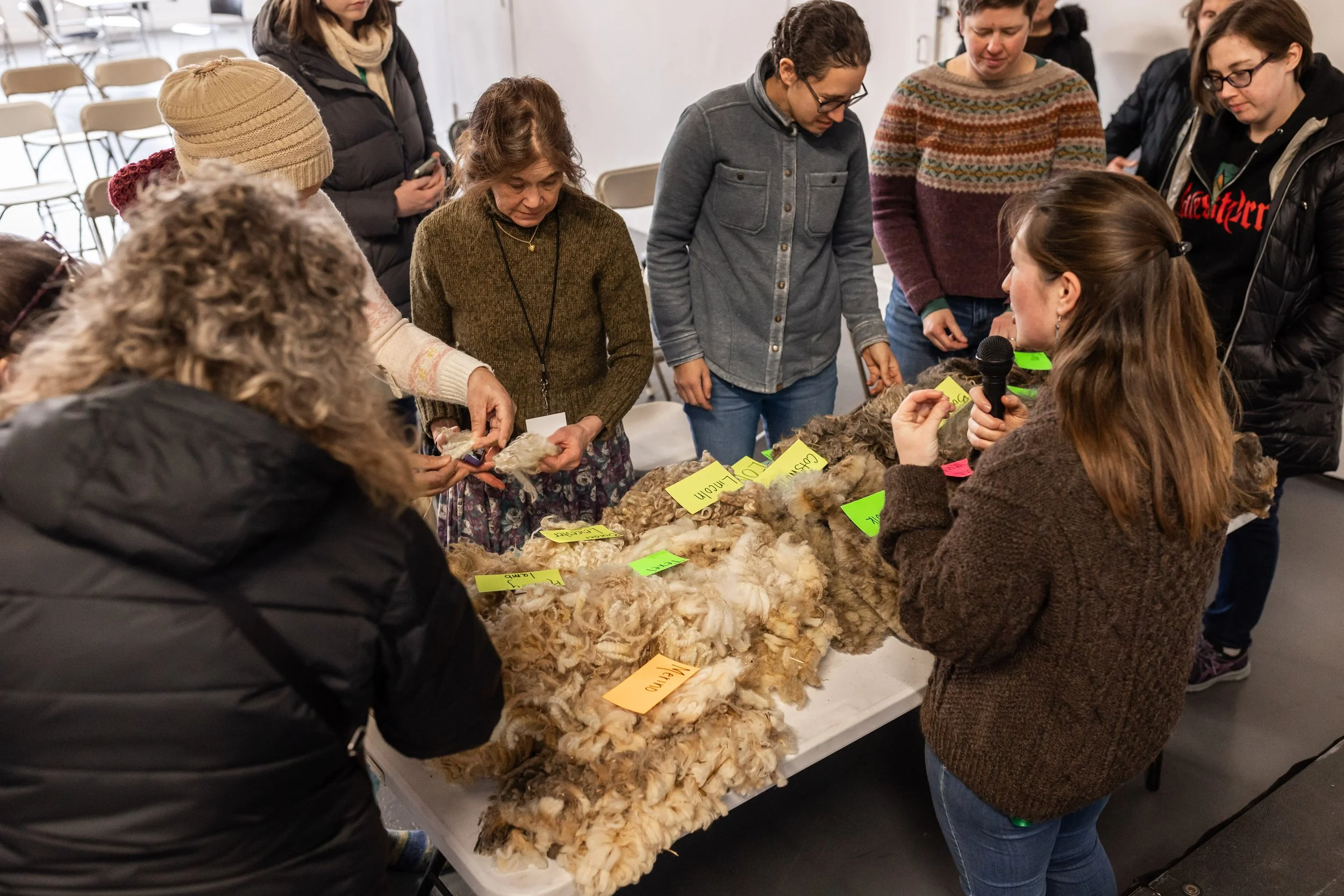 At 1p.m., an hour-long panel discussion with Knitwear Designer Gudrun Johnston, Artist + Storyteller Junli Song, Farmers Christine Bourque + Rachel Haas will be moderated by Event Host + Farmer Tammy White. Explore the many intersections between art and agriculture in the fiber industry. We will explore the rich and varied connections between artists and farmers through the spectrum of challenges and discoveries from the past, to the present and into the future.