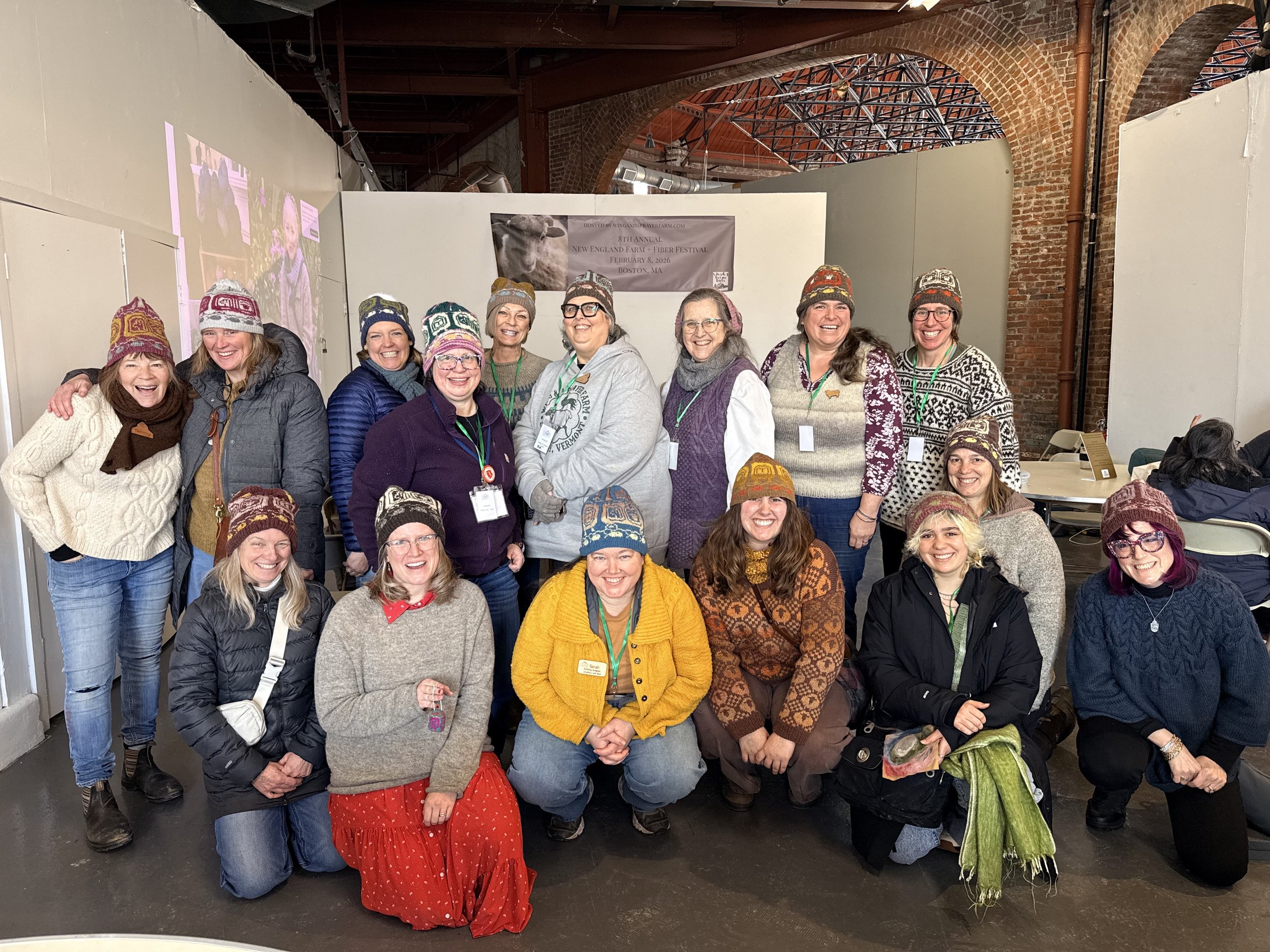We gathered on the Stage in the Lake Champlain Chocolates CommuKnity Lounge for the Great Hat Photo + showed off our MBaaTA Hats. Afterward, many KAL prizes were awarded.